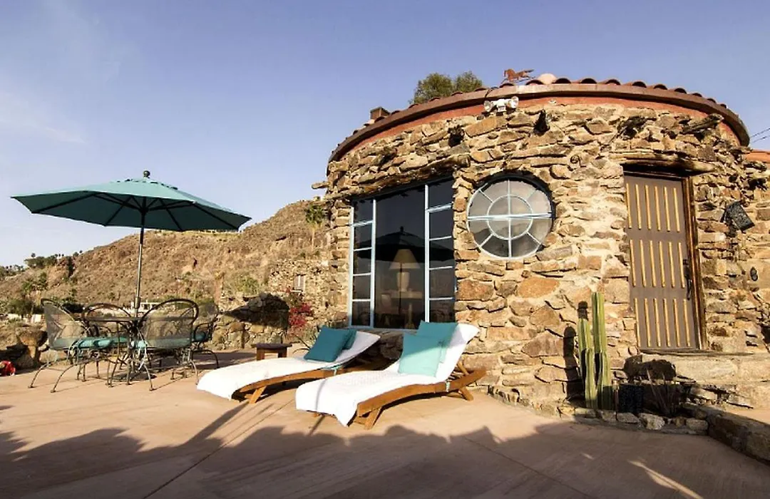 Stone-Built Bungalow Rental With Coachella Valley Views Near Palm Springs, California oferuje gościom relaksujące doświadczenie z łaźnią publiczną z gorącymi źródłami.